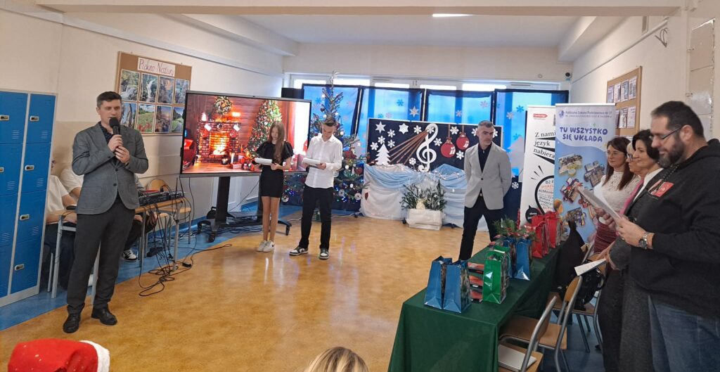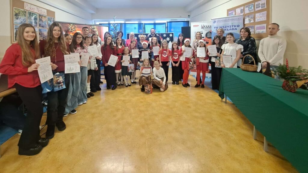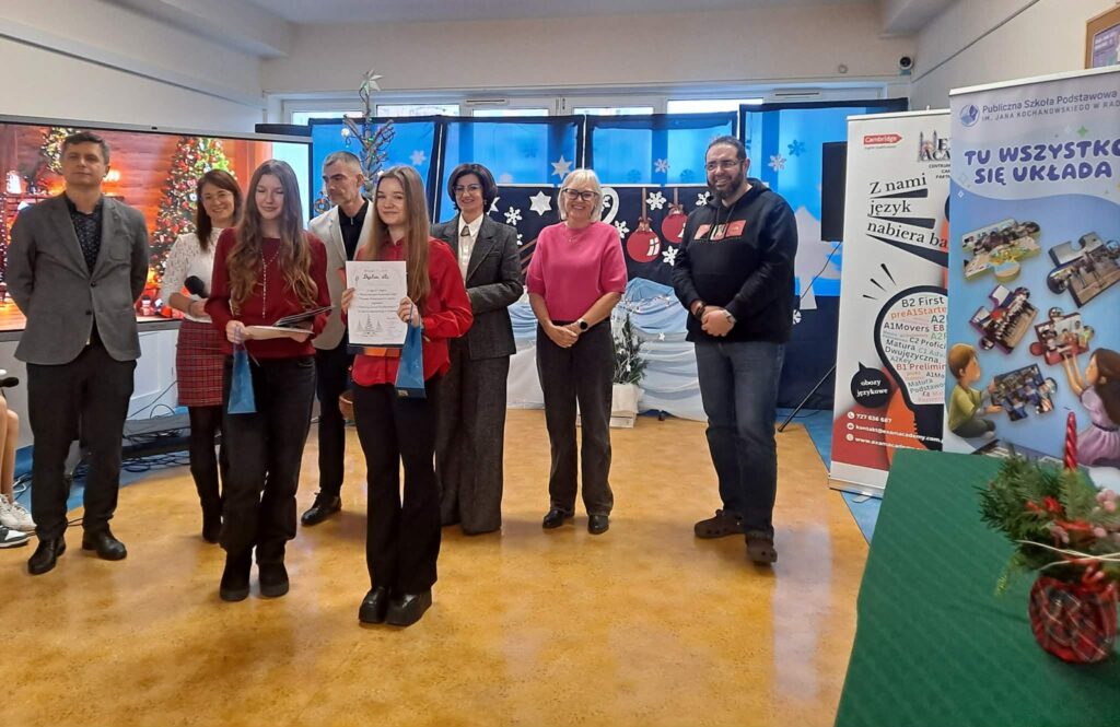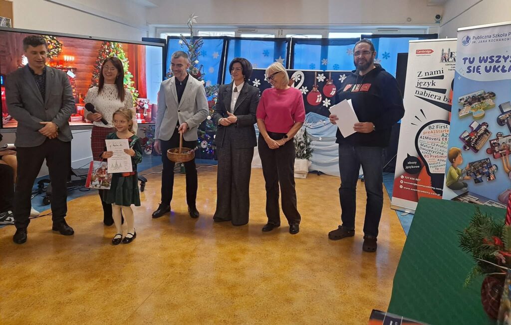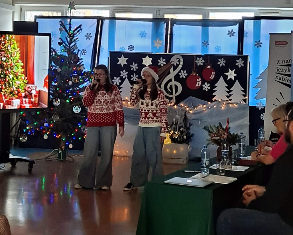 W czwartek 11 grudnia 2025r. w naszej szkole odbyła się II Edycja Międzyszkolnego Konkursu Piosenek Świątecznych w Języku Angielskim, w którym wzięło udział 24 wykonawców z radomskich szkół podstawowych. Naszą szkołę reprezentowały: Oliwia Pawlak, Liliana Wróbel oraz Dominika Klocek.