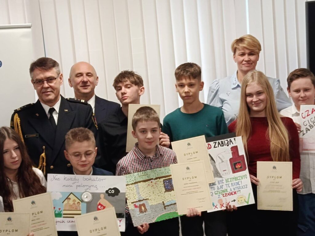 Uczniowie naszej szkoły wzięli udział w międzyszkolnym konkursie plastycznym pod hasłem ,,Nie dla czadu”, który miał na celu zapoznanie się, problematyką zagrożeń tlenkiem węgla. Zadanie konkursowe polegało na zilustrowaniu swoich przemyśleń na temat niebezpieczeństwa jakie za sobą niesie tlenek węgla-czad. Laureatmi z naszej szkoły zostali: Jędrzej Kamiński z kl. 2c i Zuzanna Odrobińska z kl. 7c . Dziękujemy wszystkim uczestnikom konkursu i gratulujemy serdecznie zwycięzcom!