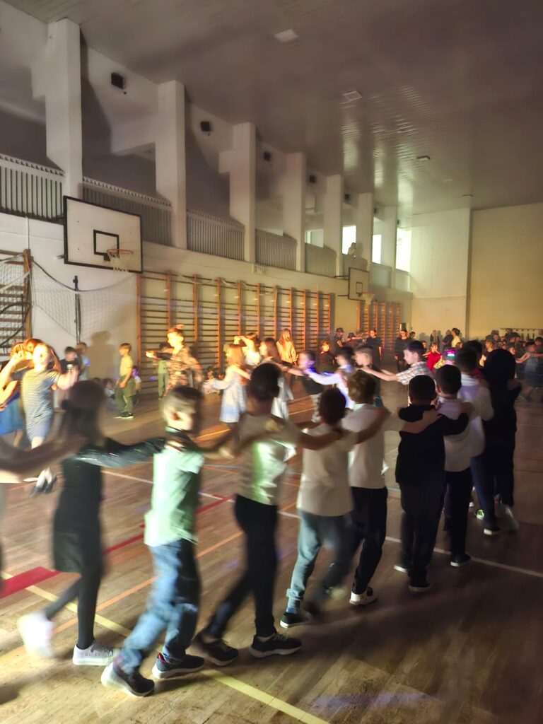 Od pierwszych minut dzieci bawiły się świetnie przy muzyce zespołu Vegas, który zadbał o wesołą atmosferę i pełny parkiet. Najmłodsi uczniowie chętnie tańczyli, uczestniczyli w zabawach muzycznych i śpiewali razem z prowadzącym.